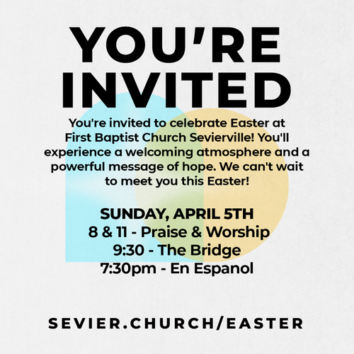 You're invited to celebrate Easter at First Baptist Church Sevierville! From Palm Sunday leading all the way to Easter we have events for everyone to celebrate and remember what Christ has done for us.